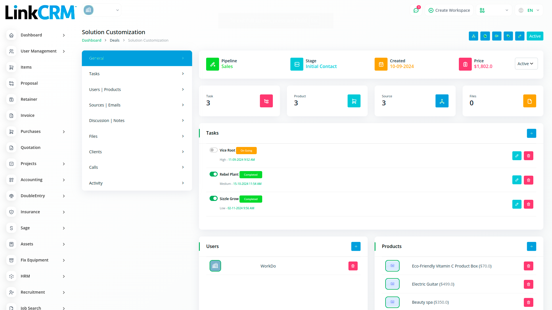 Com o LinkCRM Pro, você pode gerenciar convenientemente todas as funções do seu negócio em um único local.