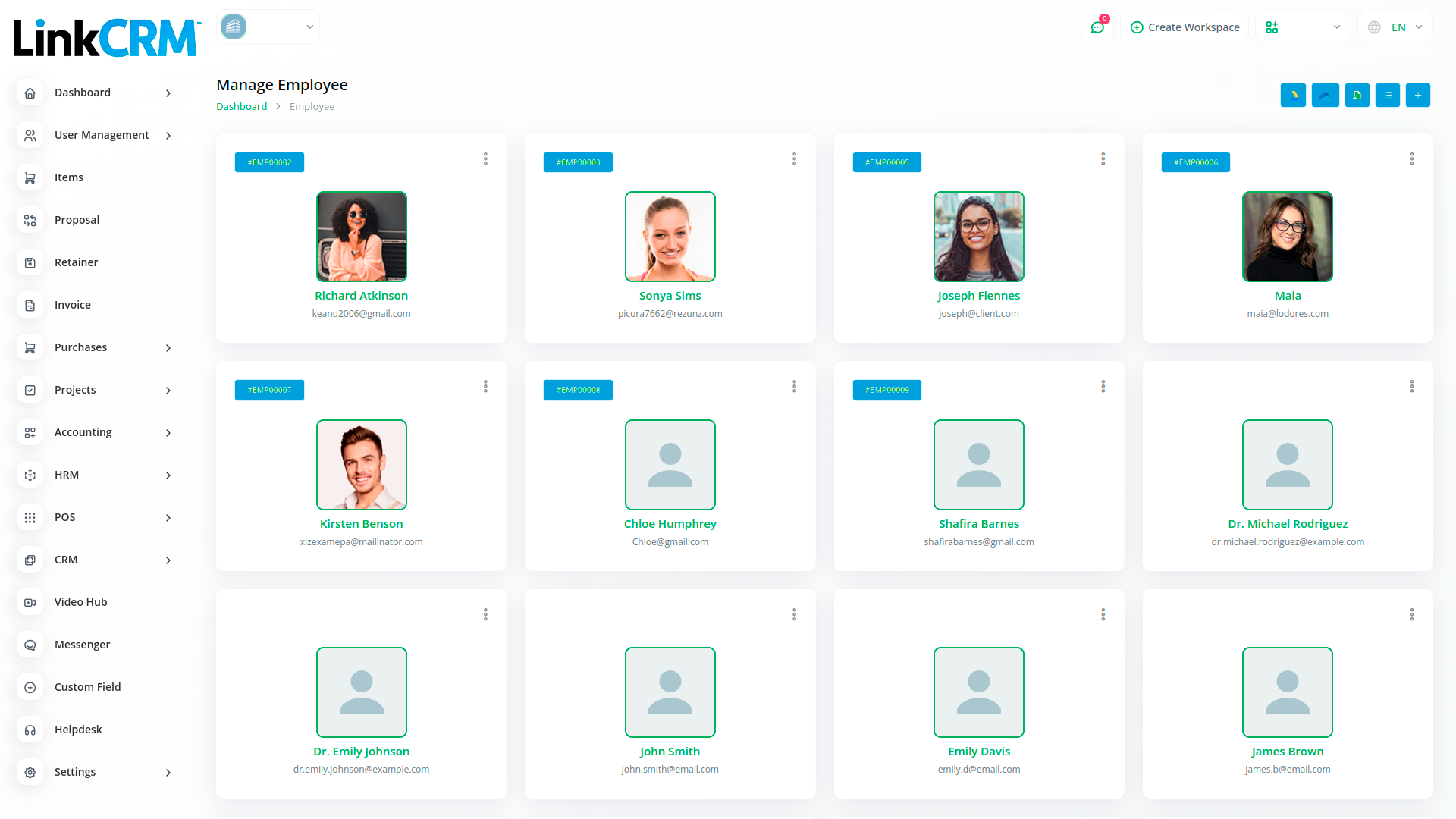 Com o LinkCRM Pro - RH, você pode gerenciar assuntos-chave de funcionários, recrutar novos candidatos, aumentar a produtividade dos funcionários e pagar seus funcionários pelo trabalho duro - sem estresse, tudo em um só lugar. Seja você um consultor, proprietário de uma pequena empresa ou uma grande corporação - o sistema é projetado para todos.