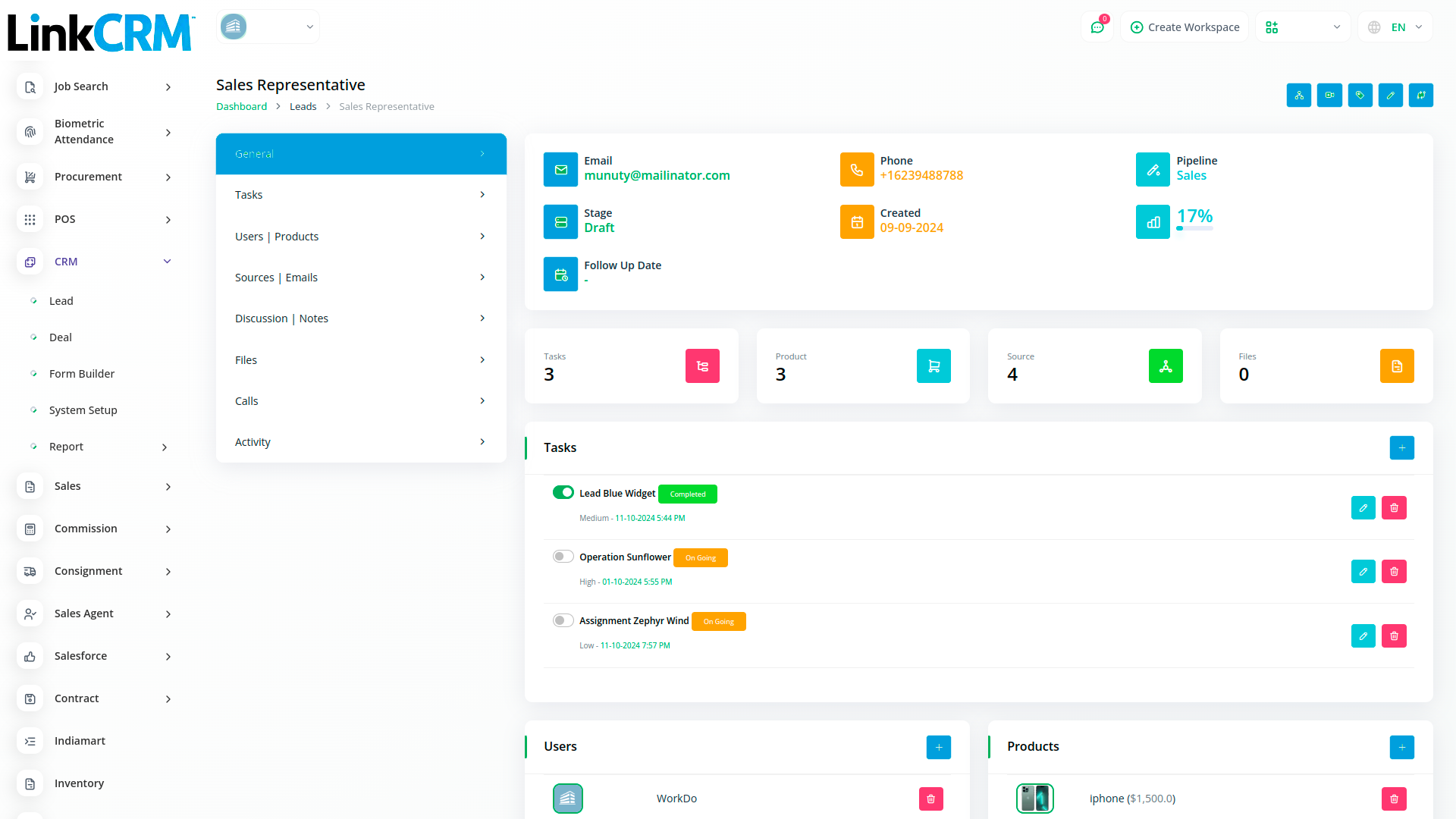 Uma ferramenta de gerenciamento para manter a precisão no gerenciamento de leads. Usando esta ferramenta proficiente, você pode gerenciar a visibilidade de seus leads em diferentes estágios do pipeline.
