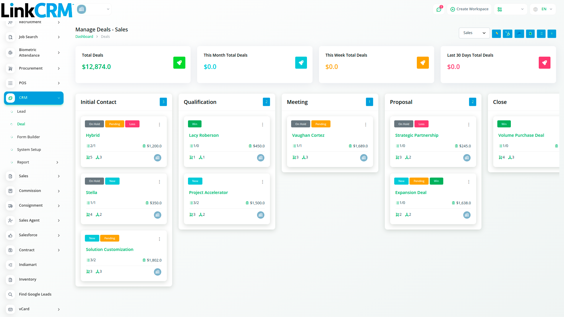 Com o LinkCRM Pro, você pode gerenciar convenientemente todas as funções do seu negócio em um único local.